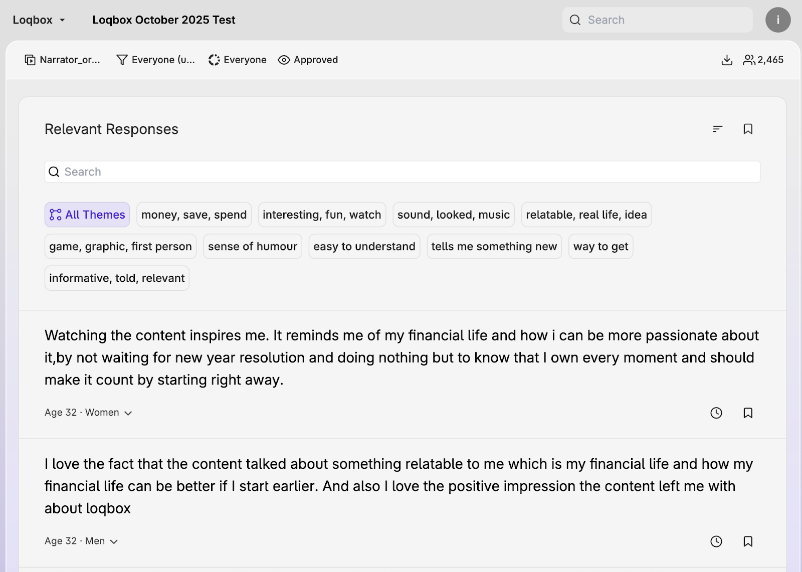 A snapshot of the qualitative comments in response to Loqbox’s winning creative.
