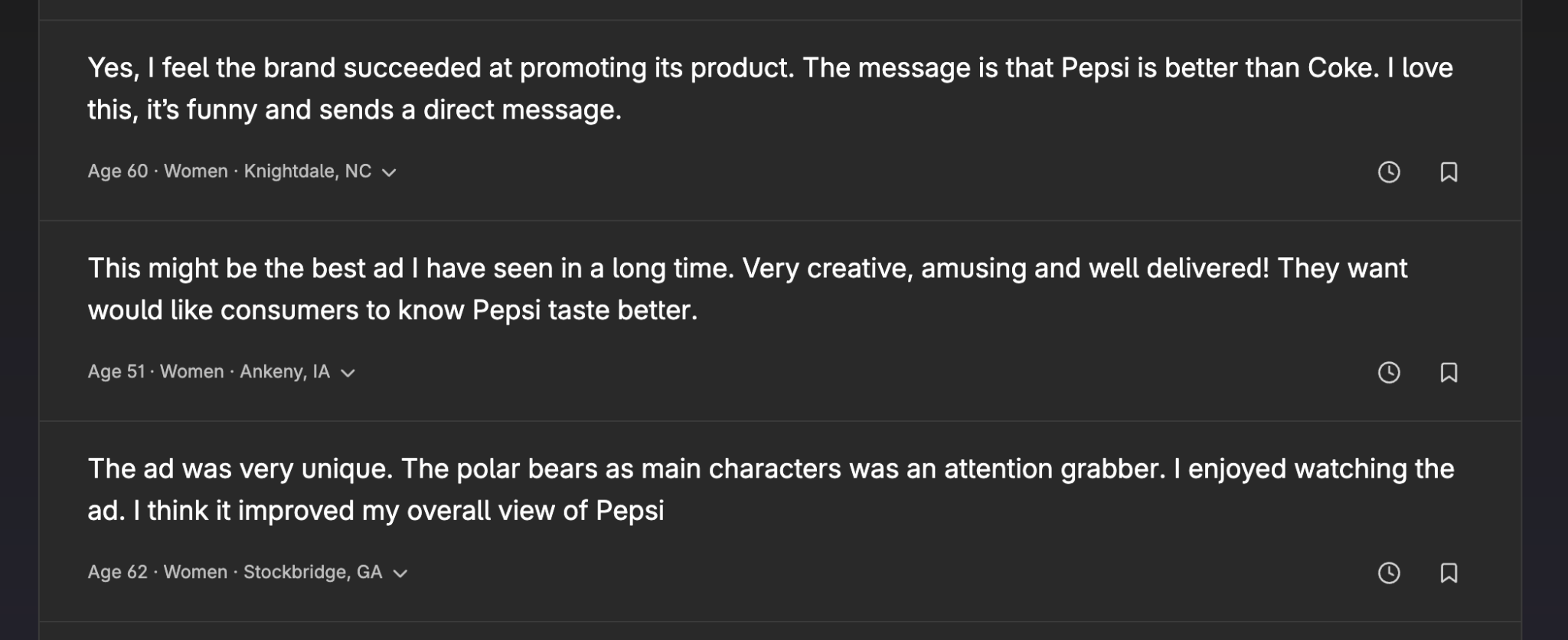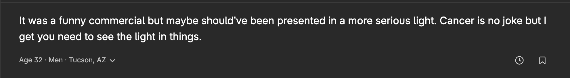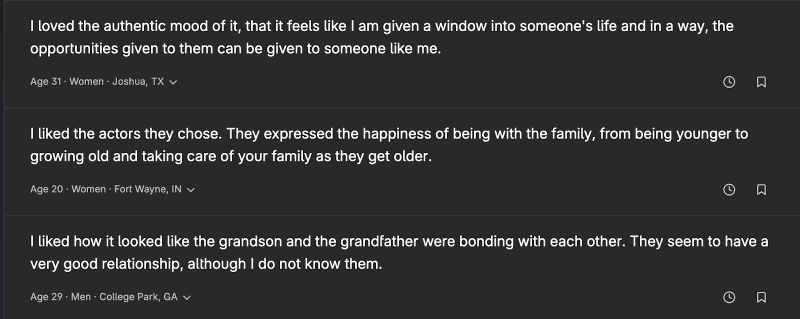 Comments from respondents also provide a qualitative view of why the ad resonated: