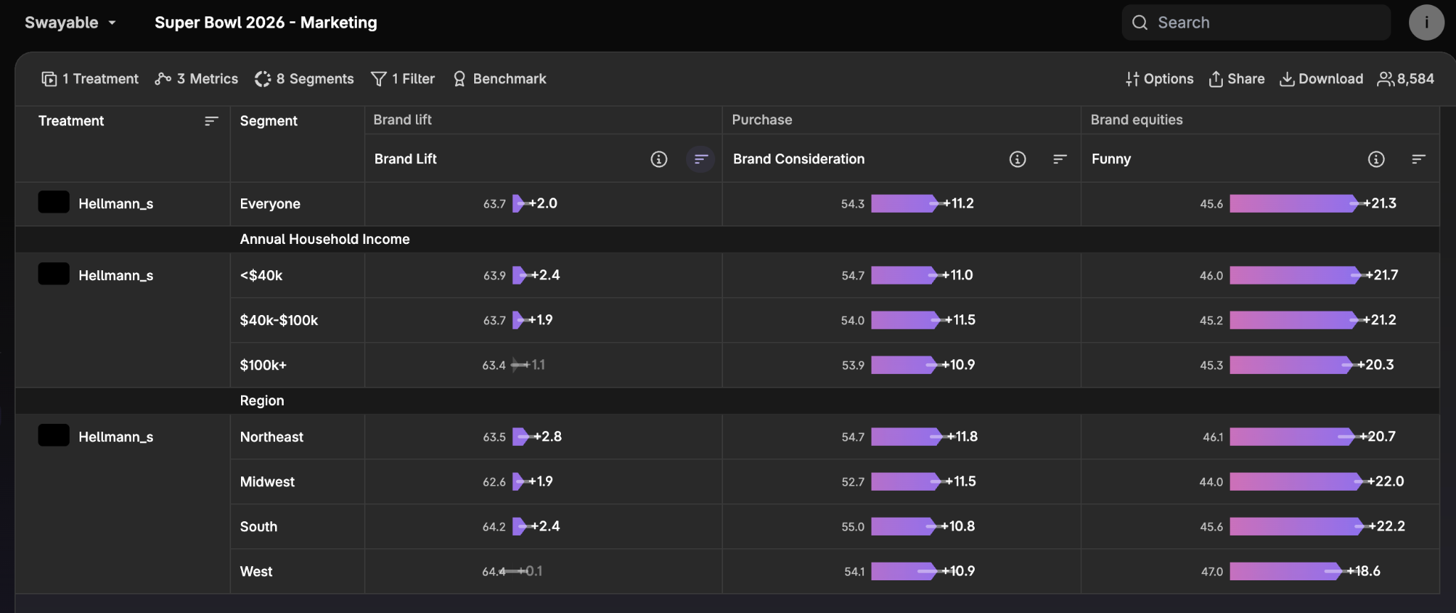 An overview of brand lift results on the Swayable dashboard.
